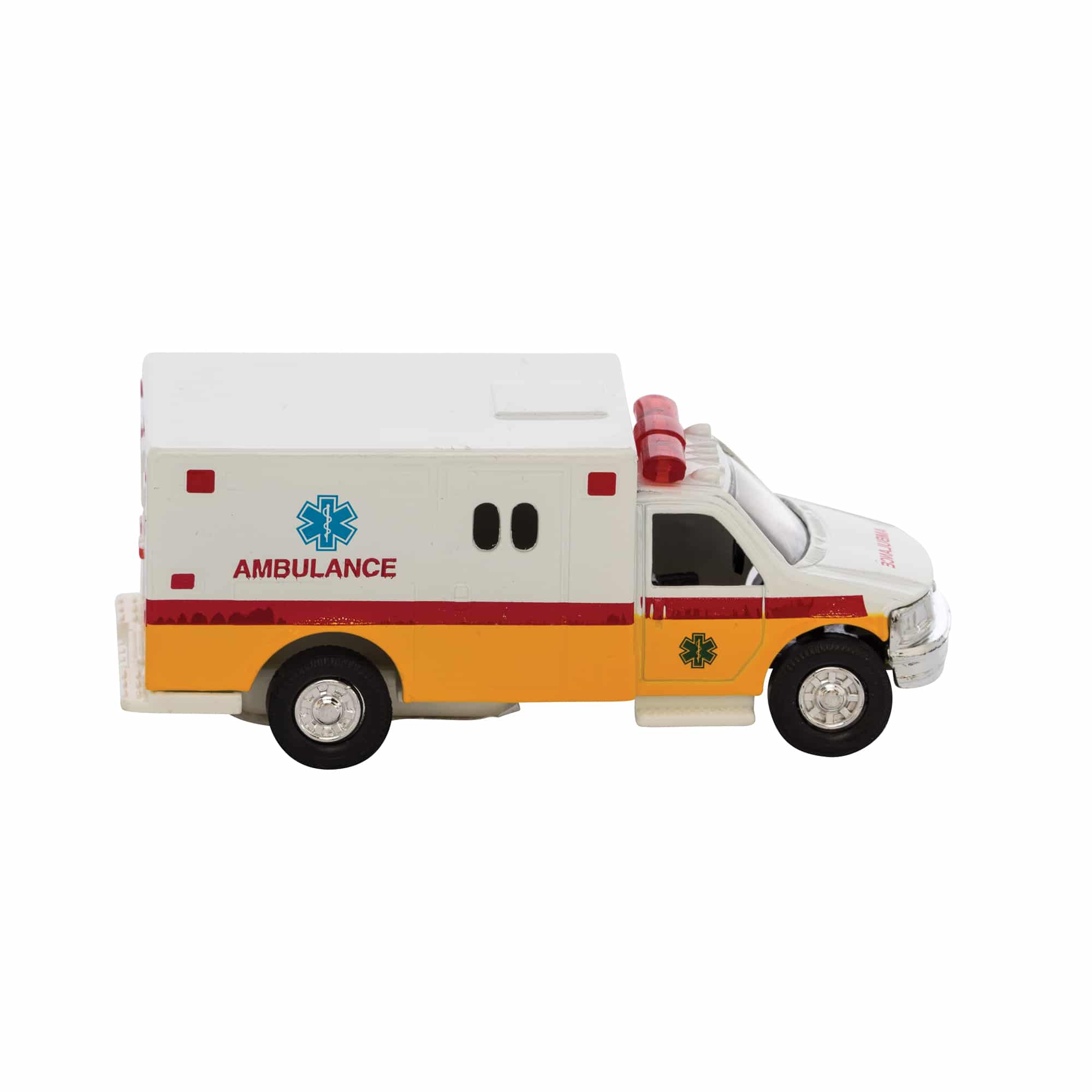 The Schylling Diecast Ambulance Is Made From Real Metal With A Hand Painted Finish. Features A Pull Back Motor, And Die Cast Body. Available In Assorted Colors, Each Sold Separately.